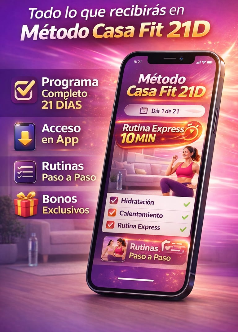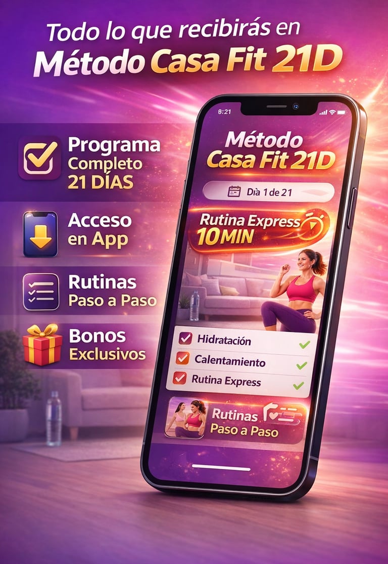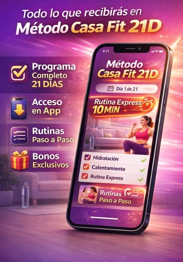 Método Casa Fit 21D es un programa práctico que te acompaña paso a paso durante 21 días para ayudarte a crear una rutina simple desde casa.