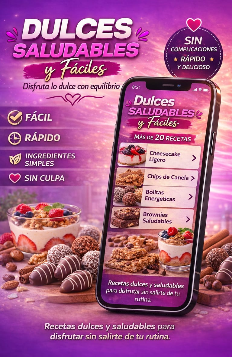 Una colección de opciones dulces simples y fáciles de preparar, para disfrutar en tu día a día sin complicaciones y mantener el equilibrio en tu rutina.